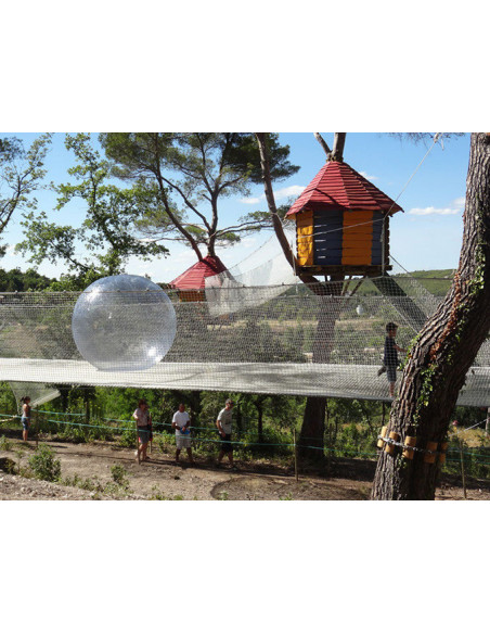 Un spectaculaire parcours de filets, surplombant quatre hectares de jeux et de surprises, vous promet 3 heures à une journée d'aventures insolites pour petits et grands !