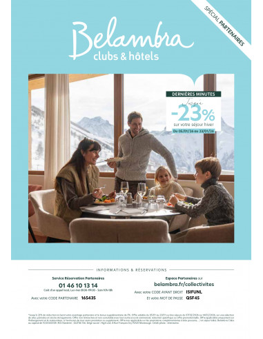 ou par Internet : http://www.belambra.fr/0/partnerLogin.html - Login ISIFUNL - mot de passe QSF45